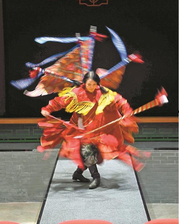 2 在新橋文化藝術(shù)中心——粵劇場(chǎng)排練粵劇穆桂英角色。