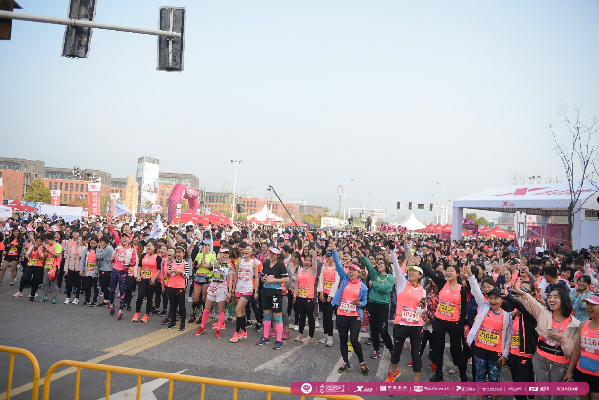 今年賽事現(xiàn)場(chǎng)最大的亮點(diǎn)在于,取消了開(kāi)賽儀式,僅保留鳴槍一項(xiàng)流程。主會(huì)場(chǎng)起點(diǎn)區(qū)域沒(méi)有了大型噴繪的主席臺(tái),取而代之的是小巧簡(jiǎn)約的發(fā)令臺(tái)。上午7點(diǎn),不間斷的熱身音樂(lè)響徹整個(gè)甜蜜小鎮(zhèn),運(yùn)動(dòng)員們?cè)谶M(jìn)入賽道集結(jié)后,配合著音樂(lè),跟隨著健身教練的指引一起熱身。上午8點(diǎn)30分,鳴槍嘉賓們準(zhǔn)時(shí)登臺(tái)鳴槍,全體3000多名跑者一起沖出起點(diǎn)門,化作一片粉紅色的海洋,向著終點(diǎn)奔去?!叭∠_(kāi)賽儀式對(duì)跑者來(lái)說(shuō)是非常貼心的一項(xiàng)舉措,讓我們?cè)谶M(jìn)入賽道之后依然能夠繼續(xù)熱身,時(shí)間一到準(zhǔn)時(shí)開(kāi)跑,整個(gè)參賽流程也更加流暢了?!眳①愡x手在賽事現(xiàn)場(chǎng)直言道,簡(jiǎn)化起跑前的儀式流程,對(duì)于跑者來(lái)說(shuō)是一種更好的參賽體驗(yàn)。