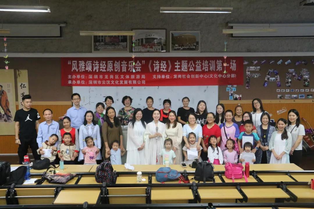 深圳新聞網(wǎng)訊2018年10月14日,龍崗區(qū)文體旅游局、龍崗社會創(chuàng)新中心(文化中心分部)攜手深圳市云漢文化發(fā)展有限公司,在深圳信息學院風雅頌詩經(jīng)原創(chuàng)傳承基地排練室共同啟動針對龍崗區(qū)外來務工人員家庭的《詩經(jīng)》主題公益課。來自龍崗區(qū)各個社區(qū)的15組家庭、共32人參加了本次培訓課程,老青少三代同堂,唱詩學禮,齊聲共鳴。
