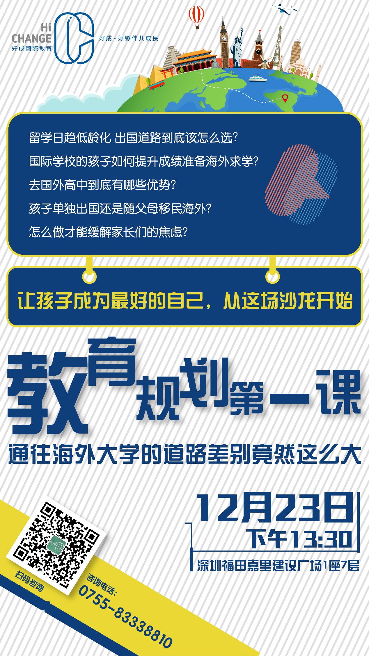 如何才能得到資深教育行業(yè)專(zhuān)家的指導(dǎo)?為孩子規(guī)劃一條平坦的出國(guó)之路,成了不少家長(zhǎng)的一件“心事”?,F(xiàn)在,就有這樣一個(gè)機(jī)會(huì),讓家長(zhǎng)們能與資深教育行業(yè)專(zhuān)家面對(duì)面接觸,為孩子從小規(guī)劃一條直通世界名校的暢通之路。