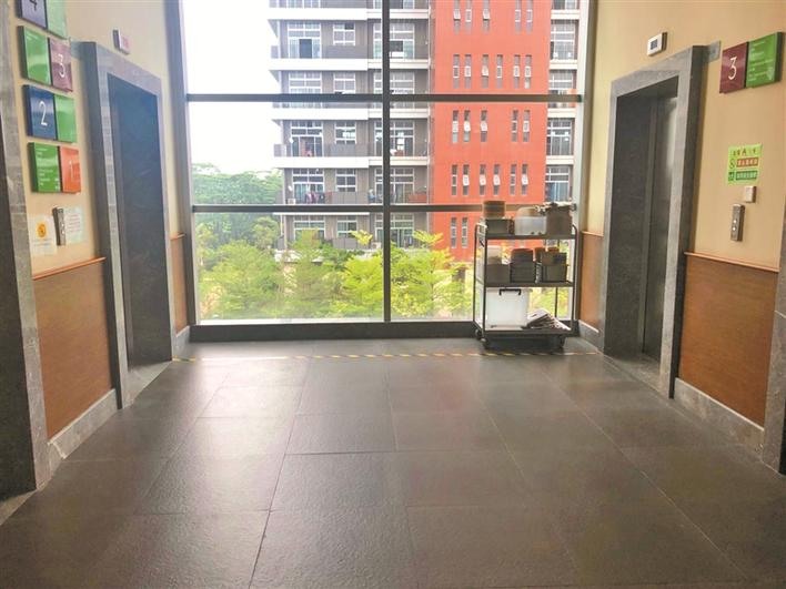 上周五記者來到事發(fā)現(xiàn)場,長廊中的餐車均已撤走,但明顯可看出,若擺上餐車,狹窄的長廊必定會對園中幼童產(chǎn)生安全隱患。校方表示,目前已選定學校教學樓電梯前一處空閑區(qū)域作為餐車放置區(qū),該區(qū)域較為寬闊,且孩子們少在此處上下,相對安全;就餐時間之外,學校也會將餐車撤離教學活動區(qū)域。