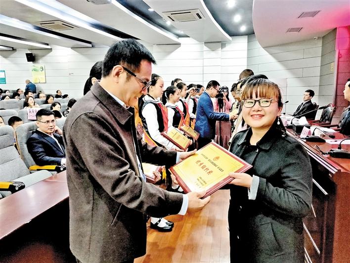區(qū)民政局負(fù)責(zé)人為獲獎單位頒獎。