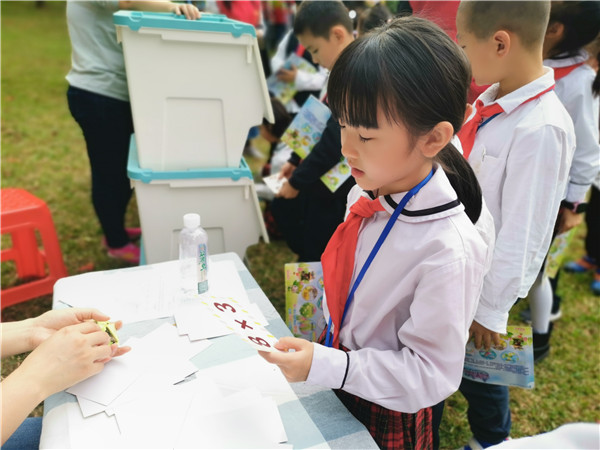 據(jù)悉,本次活動以闖關(guān)的形式,每年級各分10個關(guān)卡,每闖一關(guān)就獲得一個能量動物或者能量植物填補(bǔ)闖關(guān)卡的空白,各年級的學(xué)生需要在半小時內(nèi)將闖關(guān)卡的空白處填滿,才算闖關(guān)成功,獲得有校長贈言的書籍一本。關(guān)卡的設(shè)置以語文、數(shù)學(xué)和英語三個科別組成,其中,最受孩子們青睞的要數(shù)“筆架說話”這個關(guān)卡,孩子們把自己相像成筆架山的一員,然后介紹自己,有同學(xué)說:“我是筆架山的大樹,我可以給大家遮蔭,讓大家不用被太陽曬到?!?、“我是筆架山的石頭,孩子們來筆架山玩的時候,可以把我們拼在一起做拼圖。”、“我想成為筆架山的暗綠繡眼鳥,就是嘴巴尖尖的,頭上綠綠的,眼睛邊上有點(diǎn)白色的那種,我要站在筆架山的枝頭上盡情歌唱,紅紅的火焰花為我做背景!”......孩子們通過豐富的相信力,盡情在老師與家長義工面前展現(xiàn)臨場的表達(dá)能力。