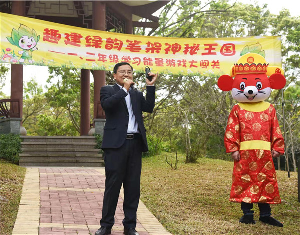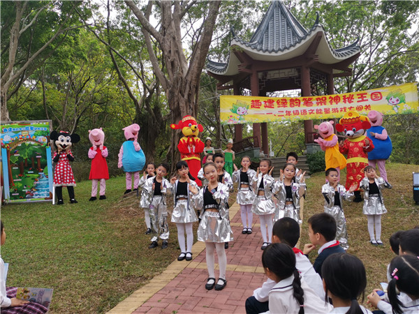 在鳥語相伴下,深圳市學(xué)生文聯(lián)秘書長謝晨的講話拉開本次活動的序幕,他贊揚(yáng)了華新小學(xué)學(xué)生們學(xué)業(yè)上的優(yōu)秀表現(xiàn),肯定本次活動寓教于自然的教學(xué)方式,也表達(dá)了多次參加華新小學(xué)的活動的喜悅之情。隨后,每個年級各準(zhǔn)備了兩個節(jié)目為現(xiàn)場帶來歡樂的氣氛,“綠韻筆架?趣建我的學(xué)習(xí)能量王國”活動正式開始,學(xué)生們紛紛往自己年級的活動區(qū)域飛奔而去。