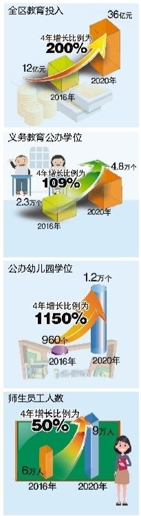 加大教育投入,教育支出增長200%;加快公辦學(xué)校和幼兒園建設(shè),公辦幼兒園從2所增加到31所,公辦園學(xué)位從960個(gè)增加到1.2萬個(gè),增長1150%;新建、擴(kuò)建公辦中小學(xué)12所,義務(wù)教育公辦學(xué)位從2.3萬個(gè)增加到4.8萬個(gè),增長104%。短時(shí)期內(nèi)實(shí)現(xiàn)公辦學(xué)位保障率全市遙遙領(lǐng)先。