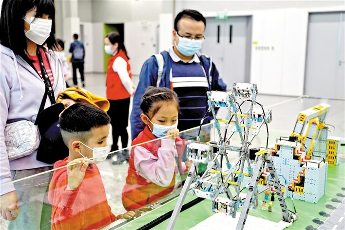 新奇的科技展品,激發(fā)了孩子們濃厚的興趣。