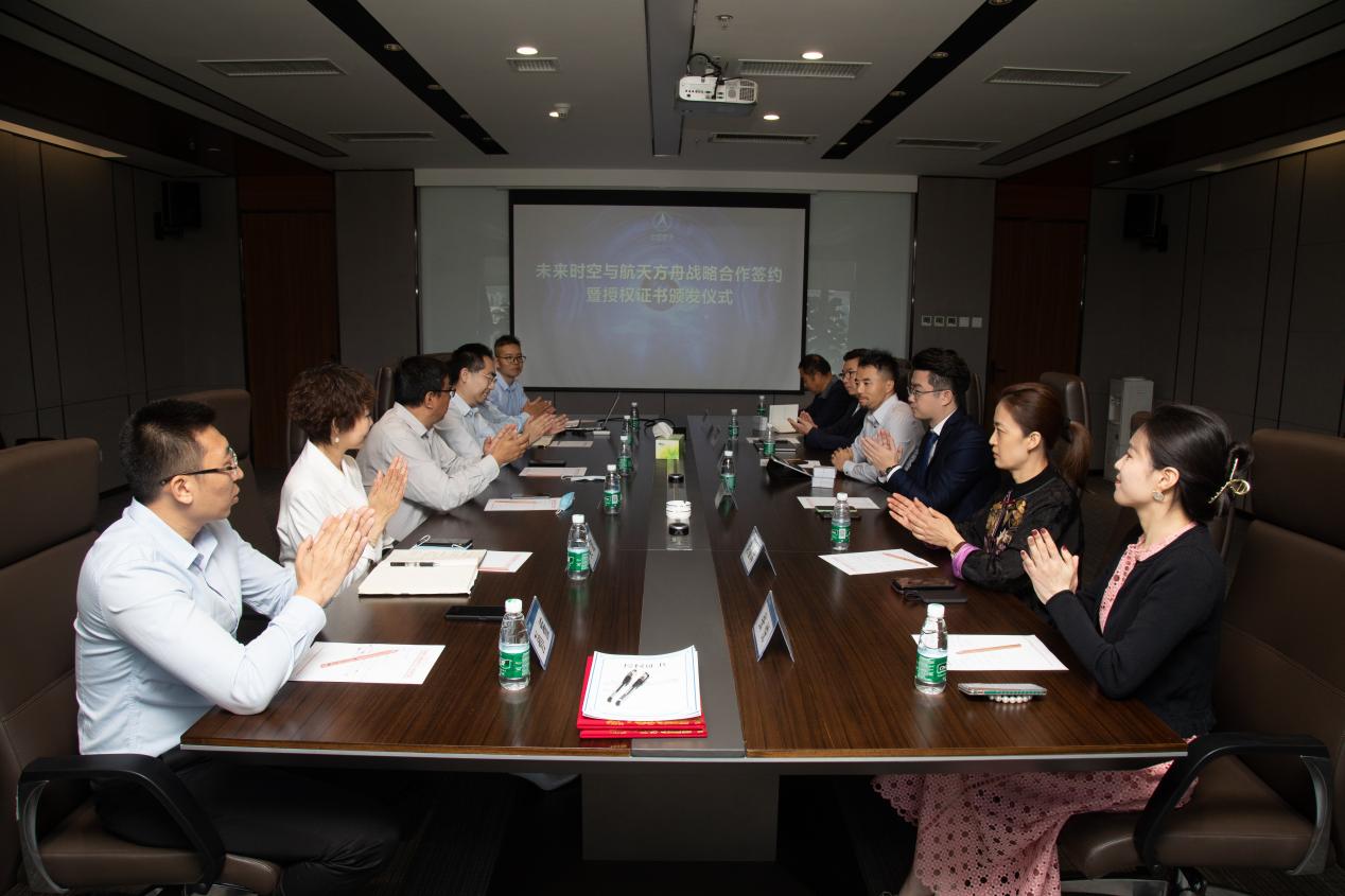 見圳客戶端·深圳新聞網(wǎng)2021年5月31日訊 (記者 陳彬)為深入推進(jìn)航天科技文化技術(shù)在社會生活、人民健康、科普教育、素質(zhì)教育和文化產(chǎn)業(yè)等領(lǐng)域的成果轉(zhuǎn)化和廣泛應(yīng)用,在中國航天系統(tǒng)科學(xué)與工程研究院有關(guān)領(lǐng)導(dǎo)的關(guān)心幫助下,未來時空(深圳)文化產(chǎn)業(yè)有限公司和北京航天方舟空間技術(shù)有限公司就航天文創(chuàng)產(chǎn)品開發(fā)、航天康養(yǎng)項目建設(shè)、航天科普教育及商業(yè)化航天器應(yīng)用等方面達(dá)成了全面合作,于5月28日上午在北京簽署戰(zhàn)略合作協(xié)議并頒發(fā)授權(quán)證書。