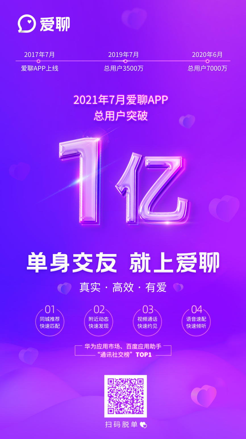 作為事件主人翁,愛聊近期頻頻發(fā)聲。從7月2日品牌升級,煥新品牌視覺形象,全新定位單身交友,到7月26日,對外宣布注冊用戶超1億,引起行業(yè)關(guān)注。今年,這匹社交黑馬以魚躍之姿,一舉打開知名度,吸睛無數(shù),各平臺下載指數(shù)飆升。從“社交黑馬”到“單身交友破局者”,創(chuàng)新性主打真實和高效,贏得用戶信賴的背后,且看愛聊一億用戶的增長戰(zhàn)略。