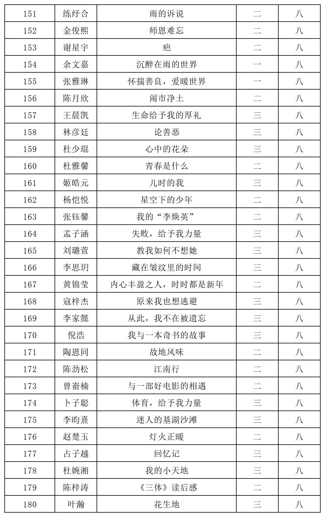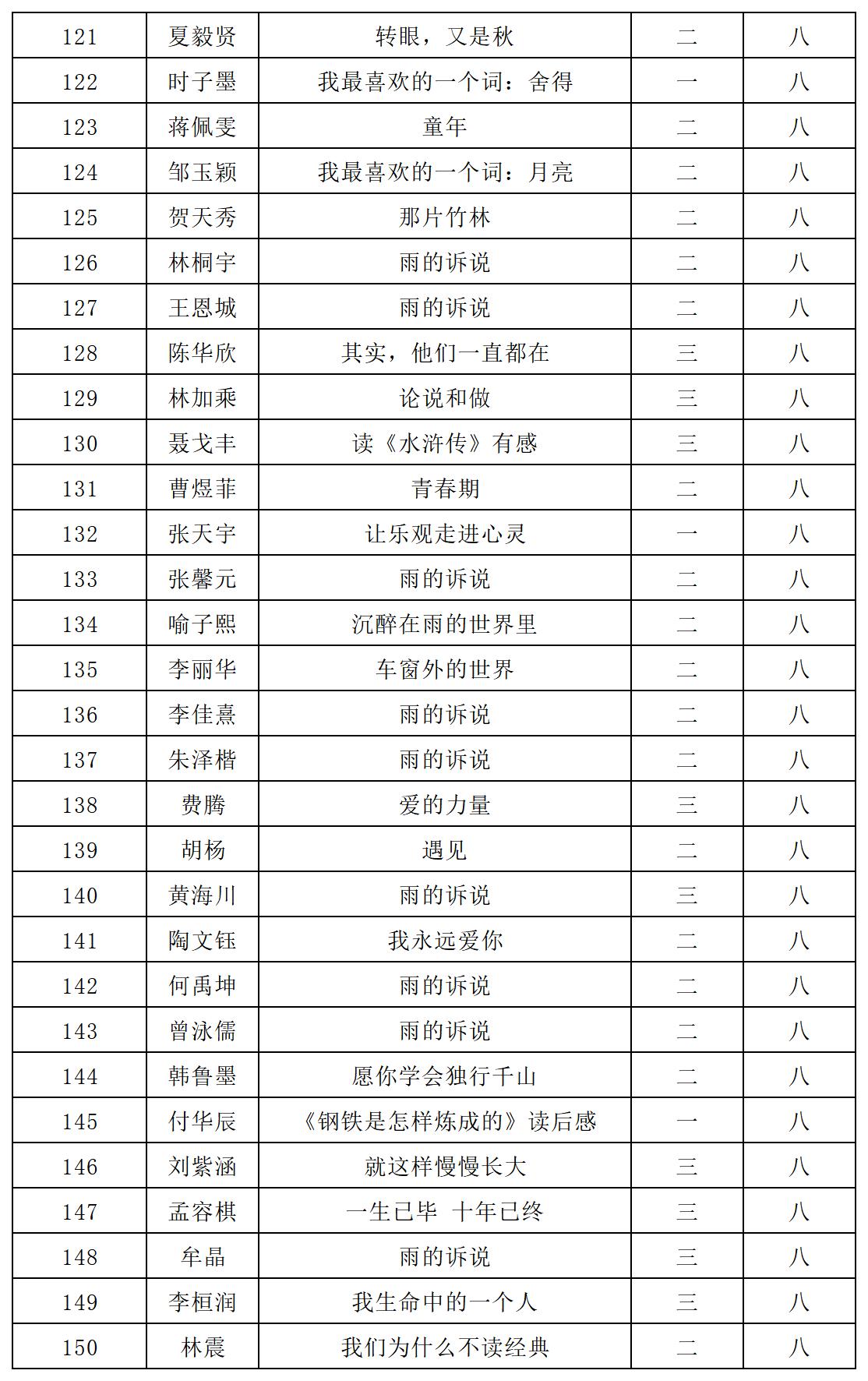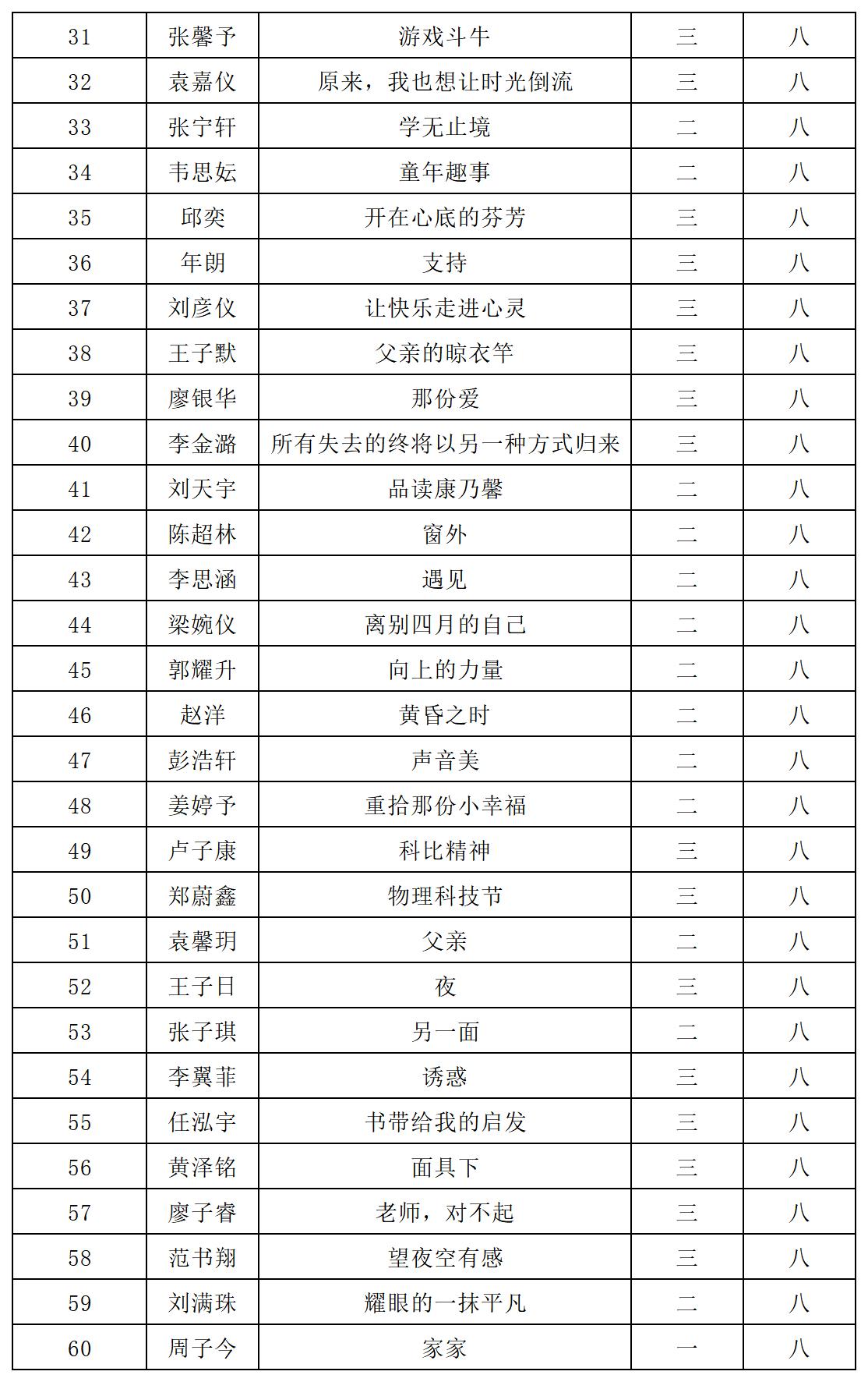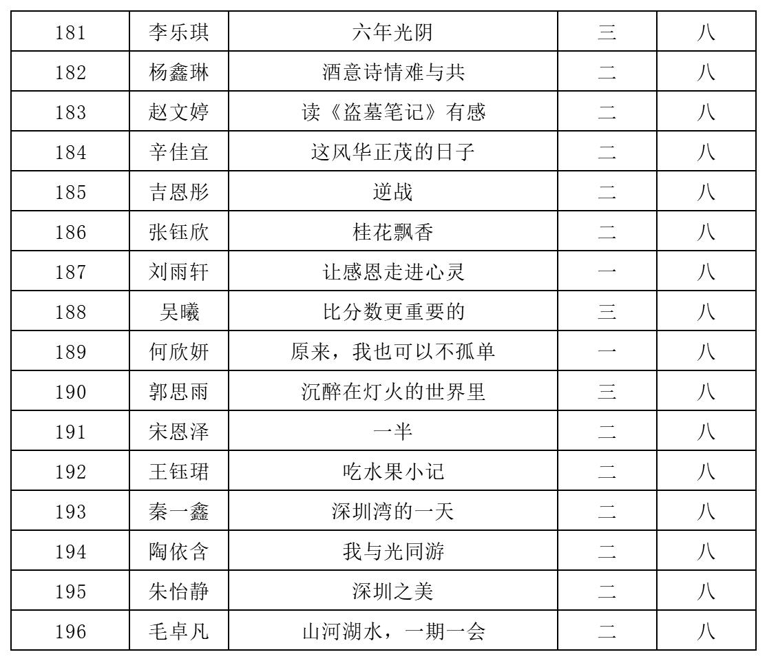 自2021年1月,活動(dòng)征稿啟動(dòng)以來,獲得了深圳市廣大中小學(xué)生、教師、文學(xué)愛好者的熱烈響應(yīng)積極參與,吸引了深圳百余所學(xué)校的上萬人關(guān)注報(bào)名。現(xiàn)公布北師大南山附屬學(xué)校中學(xué)部晉級復(fù)賽名單如下:
