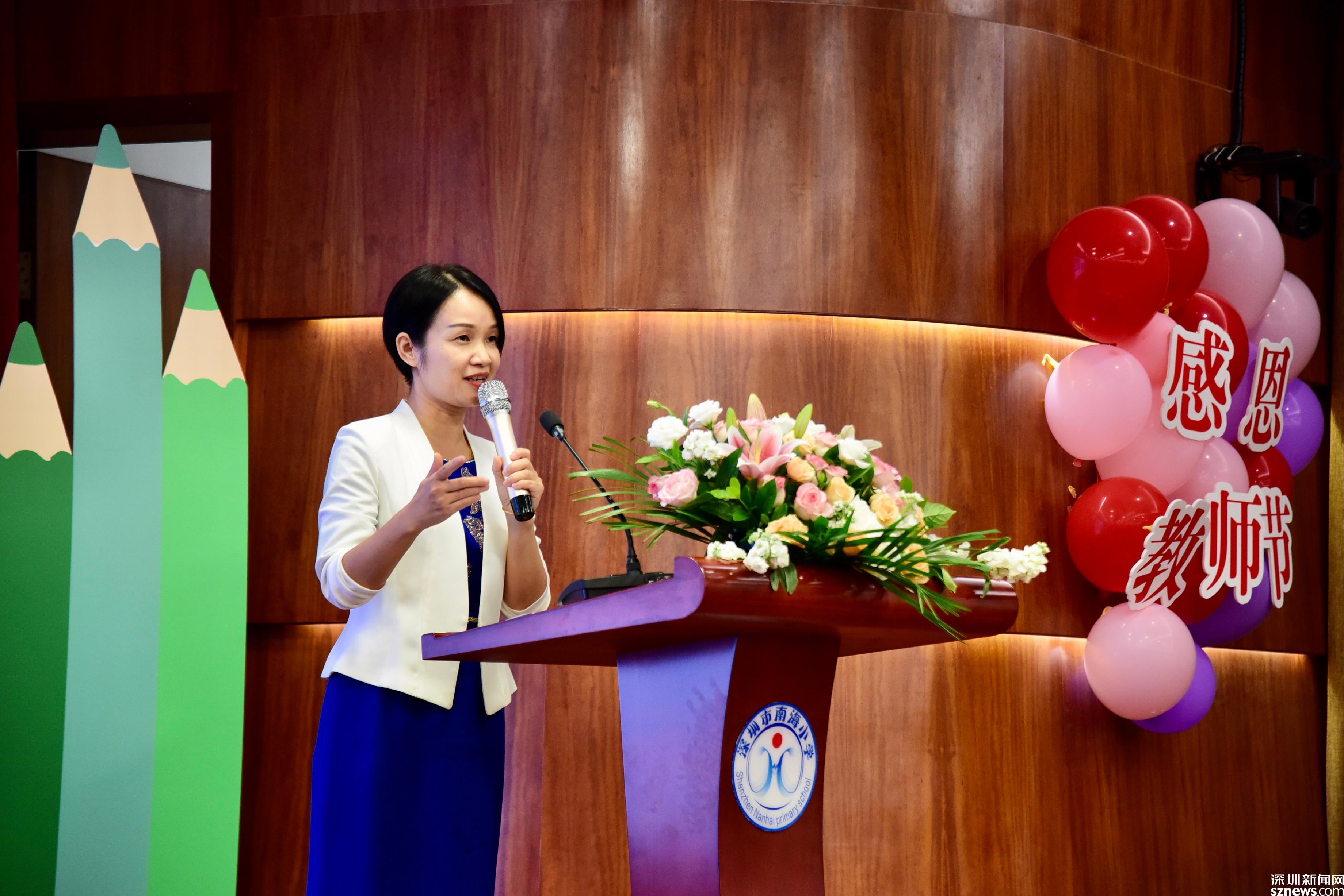 大會頒發(fā)了南海小學“十年貢獻獎”、南海小學特別貢獻獎、教學質(zhì)量獎,也對南山區(qū)優(yōu)秀教師、南山區(qū)優(yōu)秀班主任、入圍南山區(qū)2021“年度教師”決賽教師等進行了表彰。入圍南山區(qū)2021“年度教師”決賽的李艷老師、青年教師代表方子玉老師上臺分享了她們的教育教學經(jīng)驗與成長心路歷程,李艷老師說:“我不僅僅是一名英語教師,更是孩子們的夢想合伙人!”方子玉老師說:“南山就是一塊永遠充滿學習熱情的沃土,南海更是一所不斷為青年教師搭建學習平臺的寶藏學校?!?/p>