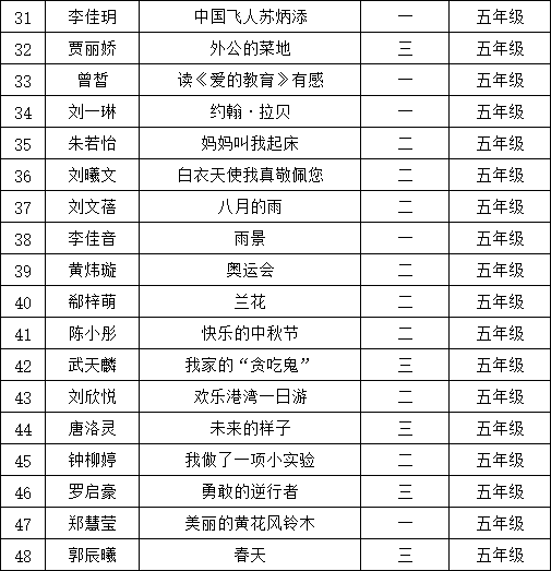 自2021年1月,活動征稿啟動以來,獲得了深圳市廣大中小學生、教師、文學愛好者的熱烈響應積極參與,吸引了深圳百余所學校的上萬人關注報名。現(xiàn)公布南山區(qū)荔香學校晉級復賽名單如下: