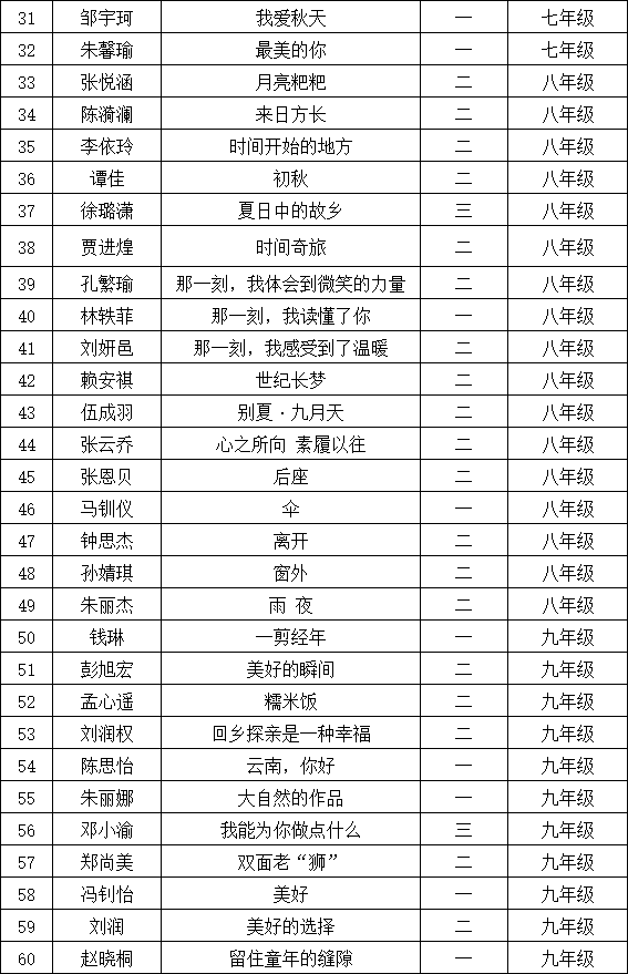 自2021年1月,活動(dòng)征稿啟動(dòng)以來,獲得了深圳市廣大中小學(xué)生、教師、文學(xué)愛好者的熱烈響應(yīng)積極參與,吸引了深圳百余所學(xué)校的上萬人關(guān)注報(bào)名?,F(xiàn)公布深圳市龍華區(qū)教科院附屬學(xué)校晉級(jí)復(fù)賽名單如下: