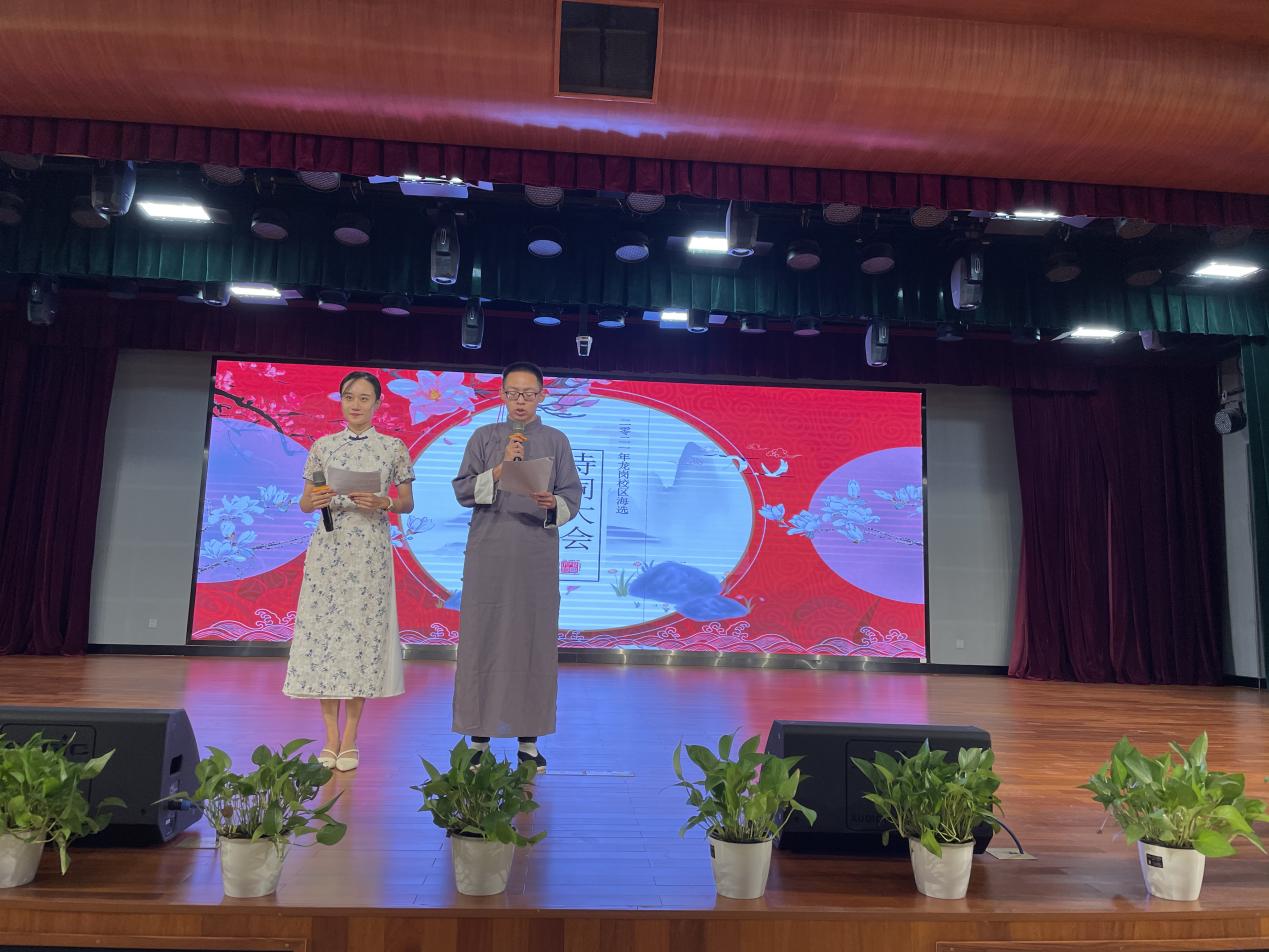 龍嶺學(xué)校領(lǐng)導(dǎo)高度重視本次海選活動(dòng),龍嶺教育集團(tuán)副總校長(zhǎng)王永忠、初級(jí)中學(xué)圖書館館長(zhǎng)黃紅成親自部署,精心組織,在海選通知發(fā)布后,龍嶺學(xué)子踴躍報(bào)名,短短的一個(gè)月時(shí)間內(nèi)報(bào)名人數(shù)就達(dá)到200余名,經(jīng)過層層篩選,從愛好詩詞的學(xué)生中篩選了15名選手參加現(xiàn)場(chǎng)海選。15位選手朗誦的詩詞題材十分廣泛,有語言自然雋永,韻律宛轉(zhuǎn)悠揚(yáng)的《春江花月夜》;有情感飽滿,豪縱狂放的《將進(jìn)酒》;有氣象恢弘,慷慨激憤的《江城子·密州出獵》;有意境壯美,胸襟豪邁的《沁園春·雪》……選手們形象自信大方,感情充沛飽滿,時(shí)而溫情傾訴,時(shí)而奔放熱情,時(shí)而娟娟細(xì)語,時(shí)而豪情壯志,充分體現(xiàn)了龍嶺學(xué)子高超的朗誦水平和良好的語文素養(yǎng),獲得評(píng)委和在場(chǎng)觀眾陣陣熱烈的掌聲。
