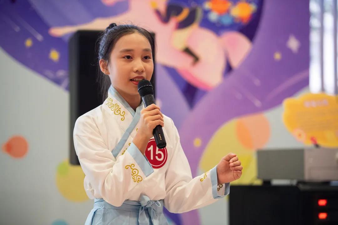 在甘坑社區(qū)廣場(chǎng),現(xiàn)場(chǎng)早早搭起了舞臺(tái),來自甘李學(xué)校的17名優(yōu)秀古詩詞愛好者躊躇滿志、躍躍欲試,甘坑社區(qū)黨委副書記魏阿妮親自擔(dān)任活動(dòng)主持人,選手們輪番上場(chǎng),為評(píng)委及社區(qū)居民呈現(xiàn)了一場(chǎng)精彩的文化活動(dòng)。