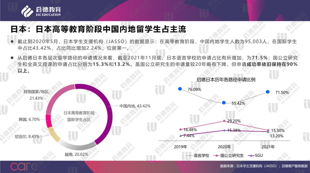讀特客戶端·深圳新聞網(wǎng)2021年12月19日訊(記者 陳彬)2021年12月18日,啟德教育發(fā)布《中國留學(xué)市場2021年盤點(diǎn)與2022年展望 》,以啟德教育自有客戶服務(wù)數(shù)據(jù)為基礎(chǔ),綜合整理美、英、澳、加、亞洲、歐洲等中國學(xué)生主要留學(xué)目的地的各類官方數(shù)據(jù),梳理出2021年中國留學(xué)市場概貌、最新招生政策,以及各主流留學(xué)目的地發(fā)生的可能對中國留學(xué)生產(chǎn)生影響的大事件,并對2022年中國留學(xué)市場的發(fā)展變化進(jìn)行了展望與預(yù)測。