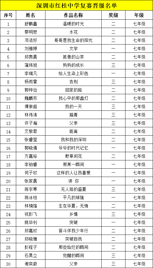冰心文學(xué)盛典 | 深圳市紅桂中學(xué)晉級復(fù)賽名單公布