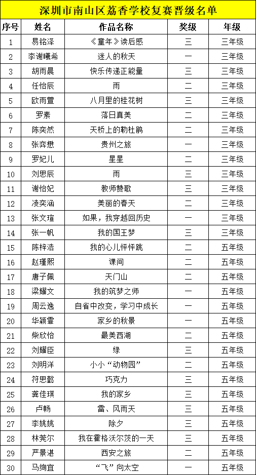 冰心文學(xué)盛典 | 南山區(qū)荔香學(xué)校晉級復(fù)賽名單公布
