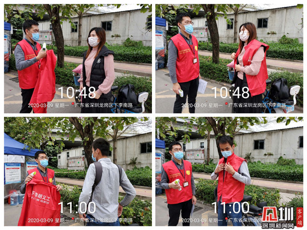 在社區(qū)工作人員的指導(dǎo)下,這位男子穿上“紅馬甲”,手拿體溫槍,立即投入到了防疫義工服務(wù)中。為進(jìn)出人員測(cè)量體溫、登記等,這位男子“不漏一車一人”,義工服務(wù)做得十分認(rèn)真。半小時(shí)志愿服務(wù)后,該男子意識(shí)到自己不戴頭盔的錯(cuò)誤行為,并表示以后會(huì)注意,“這是一次很特別的‘教訓(xùn)’,以后我肯定會(huì)記住戴頭盔的!”