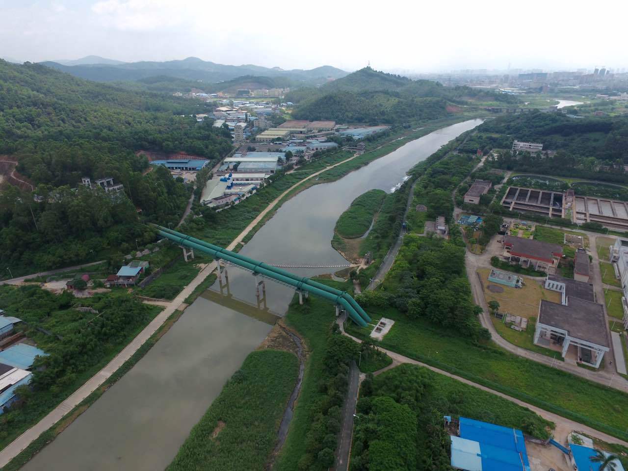 【直播君】:通過航拍視角,我們可以清晰的看到在倒吸虹管道的作用下,東江水源正在被源源不斷的引入深圳,奔流的江水奔騰的涌向它進入深圳的第二站——松子坑獺湖。而飛哥和Jerry也將跟著江水的腳步,馬不停蹄的趕往那里。