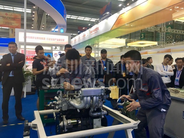 寶安職業(yè)技術(shù)學(xué)院學(xué)生現(xiàn)場(chǎng)進(jìn)行汽車(chē)發(fā)動(dòng)機(jī)拆裝與檢測(cè)