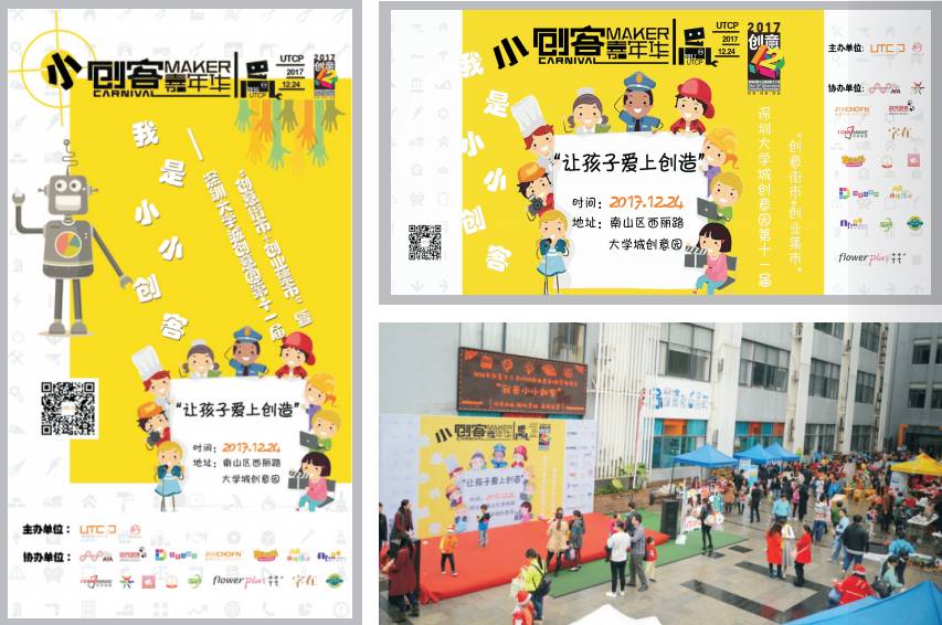 深圳大學城創(chuàng)意園主辦,活動以創(chuàng)意街市+創(chuàng)業(yè)集市的形式,展示、銷售孩子的創(chuàng)意產(chǎn)品,并結(jié)合專業(yè)創(chuàng)客實驗室、3D打印、增強/虛擬現(xiàn)實、機器人等科技、技術,讓孩子們在輕松投入的氛圍中體驗最前沿的科技產(chǎn)品和創(chuàng)客項目?!皠?chuàng)新”、“實踐”、“分享”,活動旨在培養(yǎng)孩子們的動手創(chuàng)作能力、社會交往技能、團隊協(xié)作、實踐技巧、集體榮譽,拓展孩子們的創(chuàng)新創(chuàng)意思維,讓孩子愛上創(chuàng)造,逐步提升孩子的綜合能力,為將來更好地適應社會的發(fā)展趨勢打好基礎。