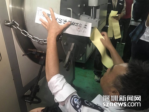 執(zhí)法人員對違法企業(yè)的設(shè)備進(jìn)行查封