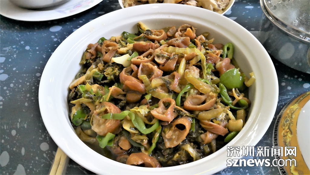 18時左右,各家各戶陸續(xù)端來飯菜:無錫排骨、酸菜炒豬大腸、客家鹽焗雞、紅燒豬腳……品種豐富,幾乎涵蓋中國各大菜系。有熱心人做了統(tǒng)計,一共有67道菜呢!