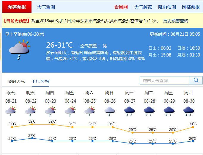據深圳氣象臺預計,21日~22日,深圳多云,局地易出現雷陣雨,風力持續(xù)微弱,部分時間還有輕霧或霾,能見度較差。其中,21日早晚濕度大,有輕霧,中午以后濕度有所下降,大部分地區(qū)輕霧會轉成輕度灰霾。