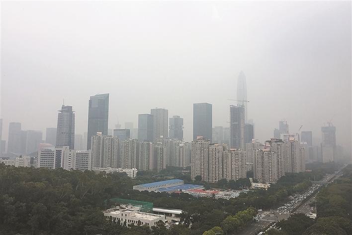 ▲深圳昨現灰霾天。 深圳晚報 見習記者 楊少昆 攝