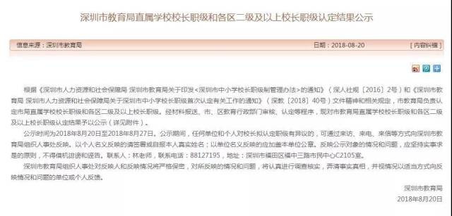 備受關(guān)注的深圳校長職級制改革有了新進(jìn)展。8月20日,深圳市教育局官網(wǎng)對直屬學(xué)校校長職級和各區(qū)二級及以上校長職級認(rèn)定結(jié)果進(jìn)行公示,共有371人。據(jù)了解,這是該項(xiàng)改革啟動后首次集中公示。各區(qū)三級及以下正、副校長的職級,由區(qū)評定委員會負(fù)責(zé)評定,目前也都在各區(qū)教育局官網(wǎng)公示中。根據(jù)統(tǒng)計,此次深圳全市評定職級的正、副校長共1297人。