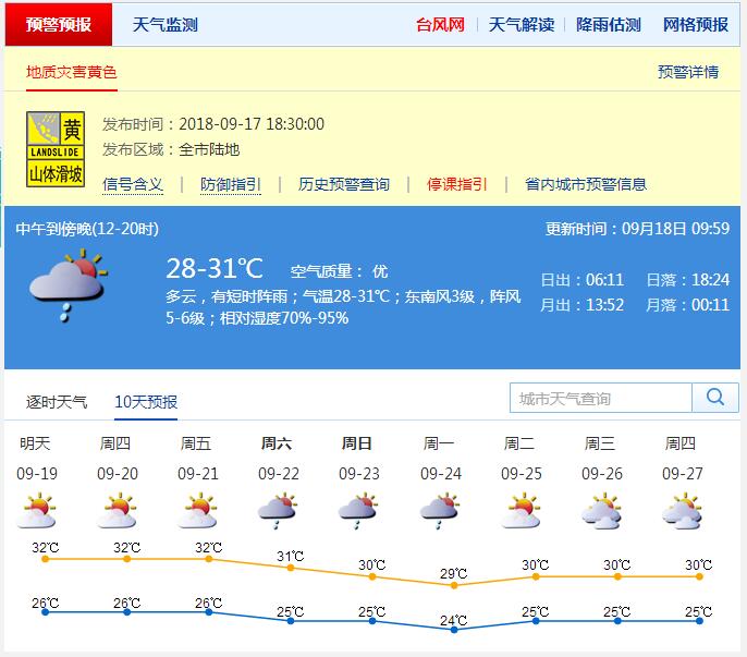 深圳新聞網(wǎng)9月18日訊(記者深圳市氣象臺)據(jù)深圳市氣象臺消息,19-21日,多云間晴天,中午前后天氣炎熱,局部地區(qū)有短時(shí)陣雨;22-24日多云,有短時(shí)陣雨。