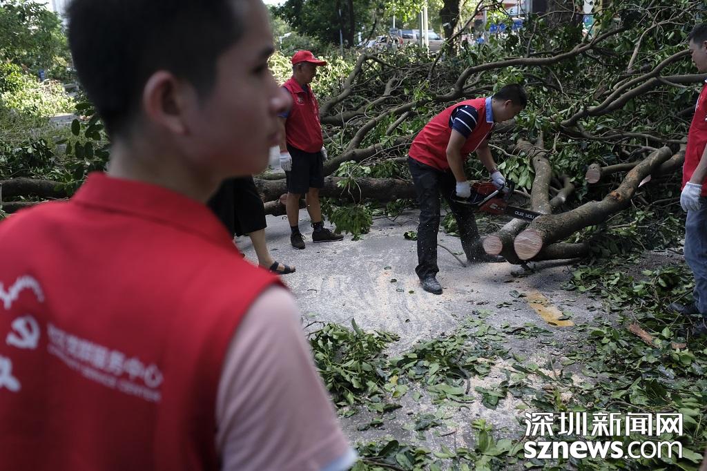 2018年09月17日下午四點(diǎn)左右,景華社區(qū)義工正在用電鋸割斷倒落樹(shù)木,從而實(shí)現(xiàn)通車。