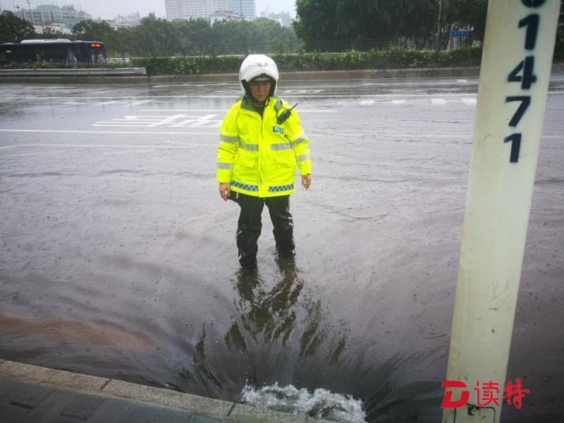 但是,眼前的情況,他們無法視而不見。深鹽二通道下方,羅沙路羅湖公安分局調(diào)頭口處,當(dāng)艾力軍經(jīng)過這里時(shí)發(fā)現(xiàn)由于地勢低洼路面已經(jīng)嚴(yán)重積水,他們馬上停下車,疏通下水道。一行人在風(fēng)雨中走進(jìn)機(jī)動(dòng)車道,沿著路邊只能用手在積水中摸索排水口的位置,將阻塞入水口的樹枝樹葉掏出來。但風(fēng)急雨驟,道路積水水位剛下降一點(diǎn),剛被清理的下水道又堵樹葉、樹枝等雜物堵上,他們只好不斷地進(jìn)行著重復(fù)的動(dòng)作。而此時(shí),臺(tái)風(fēng)“山竹”距離深圳接近130公里,羅湖片區(qū)測得最大陣風(fēng)達(dá)16級(jí)。
