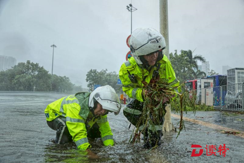 面對(duì)強(qiáng)大的臺(tái)風(fēng),艾力軍感到焦急又無奈。“真的是路兩旁的樹一棵棵的在我眼前倒下,疏通不完的排水口,清理不完的倒樹?!卑妼?duì)記者說。即便如此,他還是帶領(lǐng)隊(duì)員不斷的在風(fēng)雨中努力嘗試不讓路被積水、倒樹堵死,一次次下車排除險(xiǎn)情。