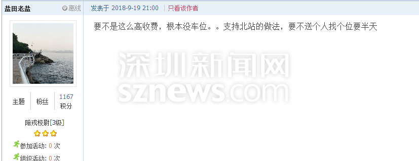 深圳新聞網(wǎng)9月21日訊(記者 施冰冰)“北站停車三天收費(fèi)412元,這不是暴利嘛?!”近日,深圳一網(wǎng)友發(fā)帖吐槽深圳北站的收費(fèi)標(biāo)準(zhǔn),他認(rèn)為深圳市中心的商業(yè)寫字樓一天封頂也不過60元,高鐵站社會停車場作為老百姓的公共交通基礎(chǔ)設(shè)施,憑什么比市中心的商業(yè)寫字樓還貴2倍多?(帖文:《 北站社會停車場作為老白姓的公共交通基礎(chǔ)設(shè)施,憑什么比市中心的商業(yè)寫字樓還貴2倍多》)