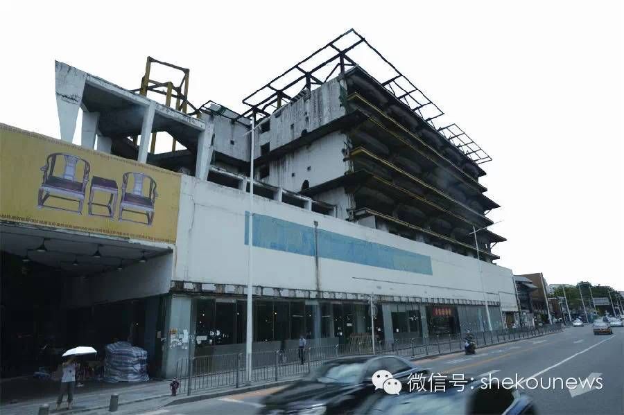 ▲破舊的南油酒店與翻新的南門(mén)一坊商業(yè)街形成巨大的視覺(jué)反差。蛇口消息報(bào)記者賀志熙攝