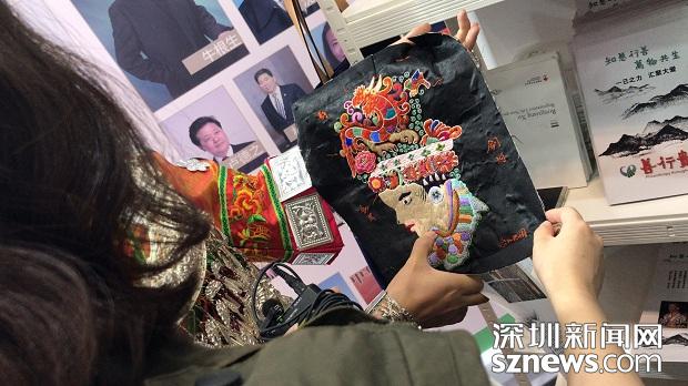 陽女士向記者展示非遺的繡品