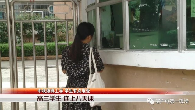 我們還了解到,就讀高三的學(xué)生只有周六放了一天假,從昨天開(kāi)始就一直在上課,預(yù)計(jì)要上到國(guó)慶節(jié)才能休息,這樣算來(lái),學(xué)生一共要連上 8 天的課程。