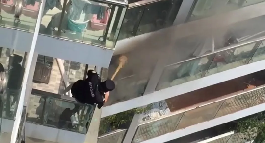 一群保安從13樓翻入12樓陽臺