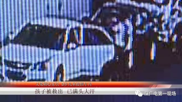 孩子被救出已滿頭大汗2分鐘后,車主章先生從工廠內跑出來,打開車門,救出了孩子,而當時孩子已經滿頭大汗,非常虛弱了。