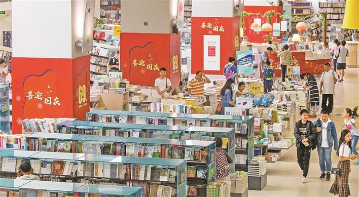 深圳書(shū)城中心城隨處可見(jiàn)慶祝國(guó)慶的主題裝飾。