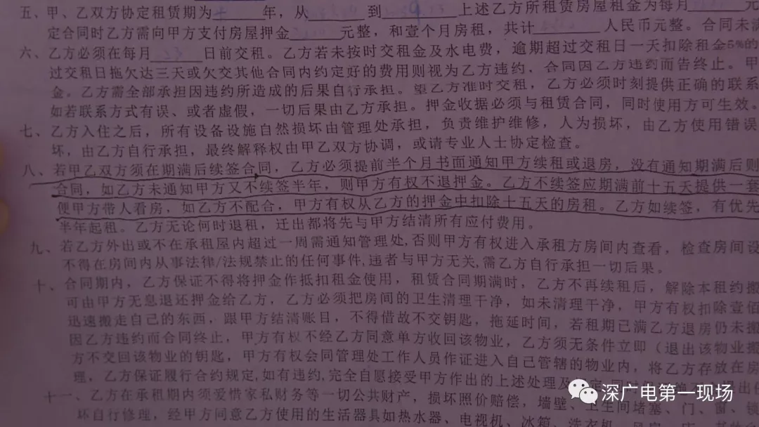 出租方一再推脫,眼看著國慶節(jié)的假期都結(jié)束了,這押金還沒還回來,此時(shí)出租方又給出了新的理由,說租房合同上,寫明退房需要提前15個(gè)工作日出示書面通知,否則押金有權(quán)不退。