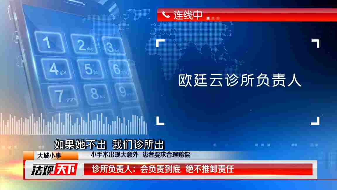 記者試圖向負(fù)責(zé)人索要涉事醫(yī)生的相關(guān)信息,但是遭到拒絕。負(fù)責(zé)人表示,雖然導(dǎo)致周女士出事的是易醫(yī)生,但是手術(shù)是在診所內(nèi)做的,醫(yī)生也是診所從外面請的,所以,診所會對此事負(fù)責(zé),絕不推卸責(zé)任。對于醫(yī)生的手術(shù)問題,診所會向醫(yī)生追償。