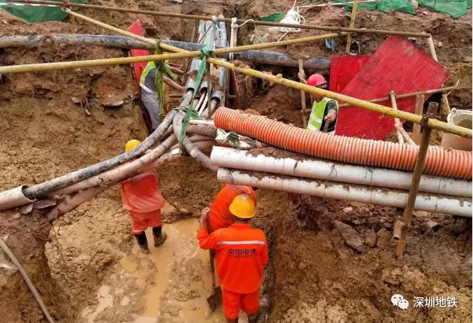 目前,深圳地鐵12號(hào)線黃田站綠化遷移設(shè)計(jì)439棵,累計(jì)完成439棵,完成100%;西側(cè)交通疏解倒邊施工已完成;西側(cè)通信管線下沉保護(hù)1300米,并完成新建通訊井兩座。給水管線改遷340米,電力管線下沉保護(hù)640米,并完成新建電力井一座。燃?xì)夤芫€保護(hù)183米,DN200燃?xì)夤芫€封堵完成。完成雨污水管線開槽直埋26米,累計(jì)各類管線保護(hù)及改遷完成100%。