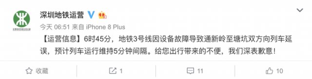 9日上午,深圳地鐵3號線發(fā)生故障致列車停運(yùn)