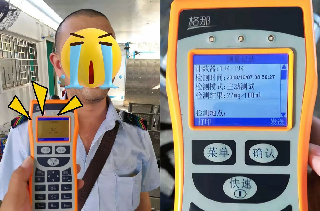 何某平告訴民警,自己是在前一天8點(diǎn)多吃晚飯時(shí)喝了二兩白酒,第二天早上覺(jué)得自己應(yīng)該“醒酒”了,就照常上班。沒(méi)想到隔夜酒還未退散。