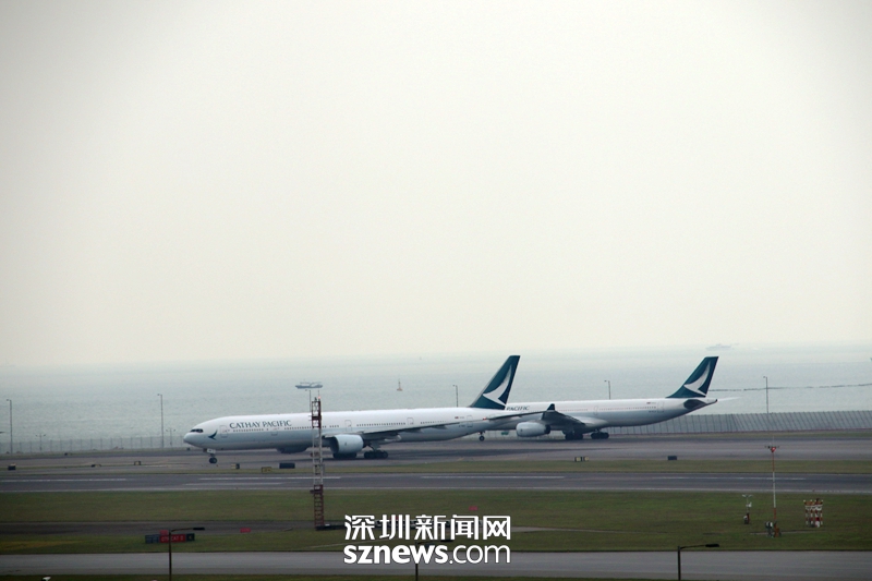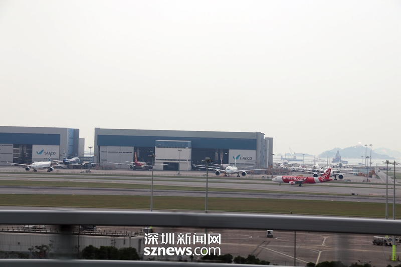 打開(kāi)右手邊車窗,就可以看到香港機(jī)場(chǎng)的停機(jī)坪