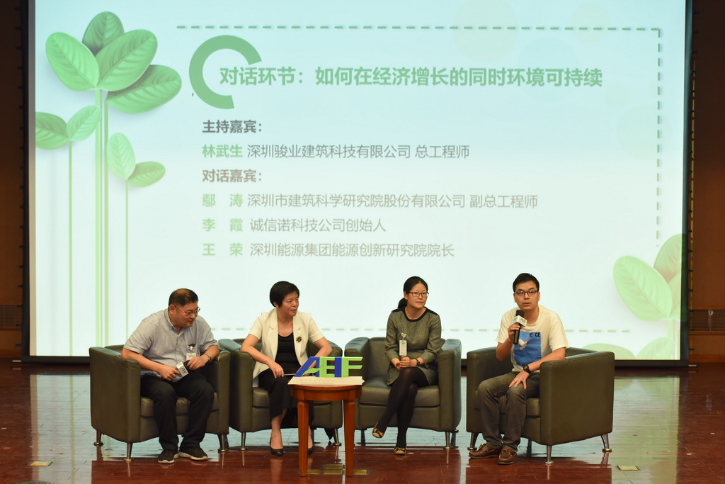 “如何在經濟增長的同時環(huán)境可持續(xù)”是10月27日論壇的最后一個對話環(huán)節(jié),由深圳駿業(yè)建筑科技有限公司總工程師林武生擔任嘉賓主持,來自來自深圳能源集團能源創(chuàng)新研究院的王榮院長、深圳市建筑科學研究院股份有限公司副總工程師鄢濤、誠信諾科技公司創(chuàng)始人李霞不僅對競賽單元的4個項目以及之前的嘉賓分享內容進行了點評和回顧,在介紹各自所在企業(yè)背景的基礎上,還從綠色建筑和清潔能源發(fā)展的角度進行分析,如何在經濟增長的同時堅守環(huán)境底限,不做故作綠色的項目,從戰(zhàn)略到細節(jié)思考和實踐具有持續(xù)性的創(chuàng)新設計。