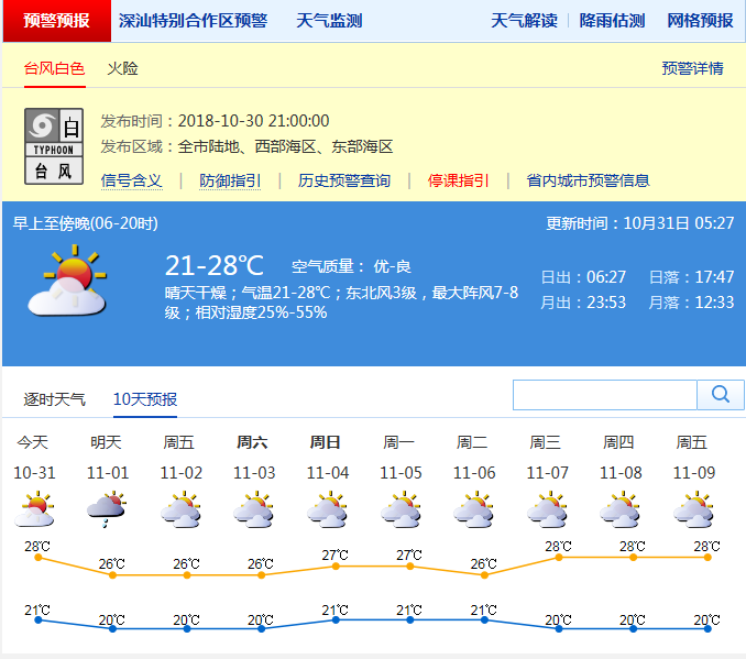 受其影響,31日深圳市沿海和高地陣風7-8級,1日加大至8-9級。