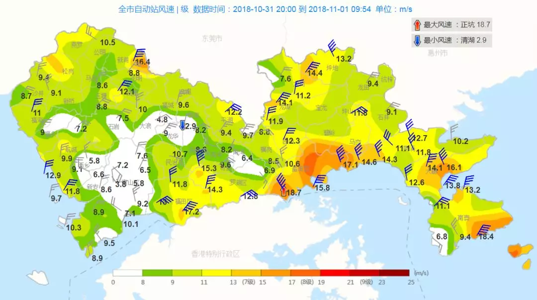 圖4:31日夜間到1日白天全市最大陣風分布